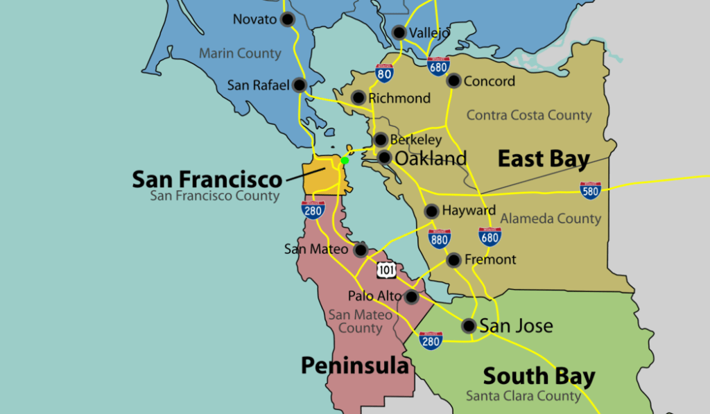 This map shows the northeast area of San Francisco, including Market Street, the Union Square shopping and hotel district, “FiDi” and the larger South of Market neighbourhoods. You can see Oracle Park down there on the border of SoMa and Mission Bay in a small area known as China Basin. It’s like saying Target Field is in the North Loop part of downtown Minneapolis.