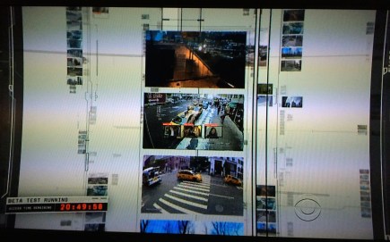 Previous ImageNext Image Samaritan’s Display A good look at Samaritan’s white and vertical display. Whereas The Machine scatters information across a black background, Samaritan organizes it vertically on white.