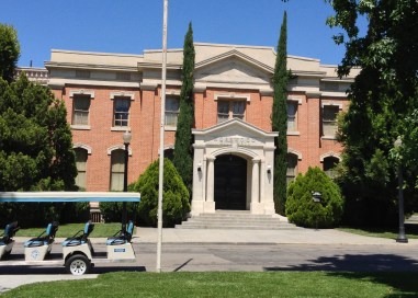 This building on one side of the square was the courthouse in Dukes of Hazard. Right now it’s a high school for Pretty Little Liars on ABC Family.