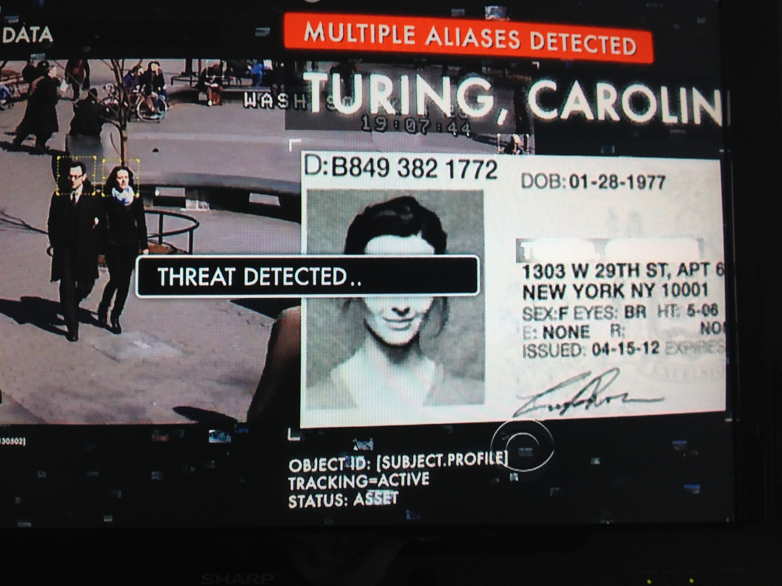 Previous ImageNext Image Person of Interest – Tracking Root The Machine finds a threat surrounding Root. Finding another alias and her driver’s license, The Machine identifies a threat to or from Root.