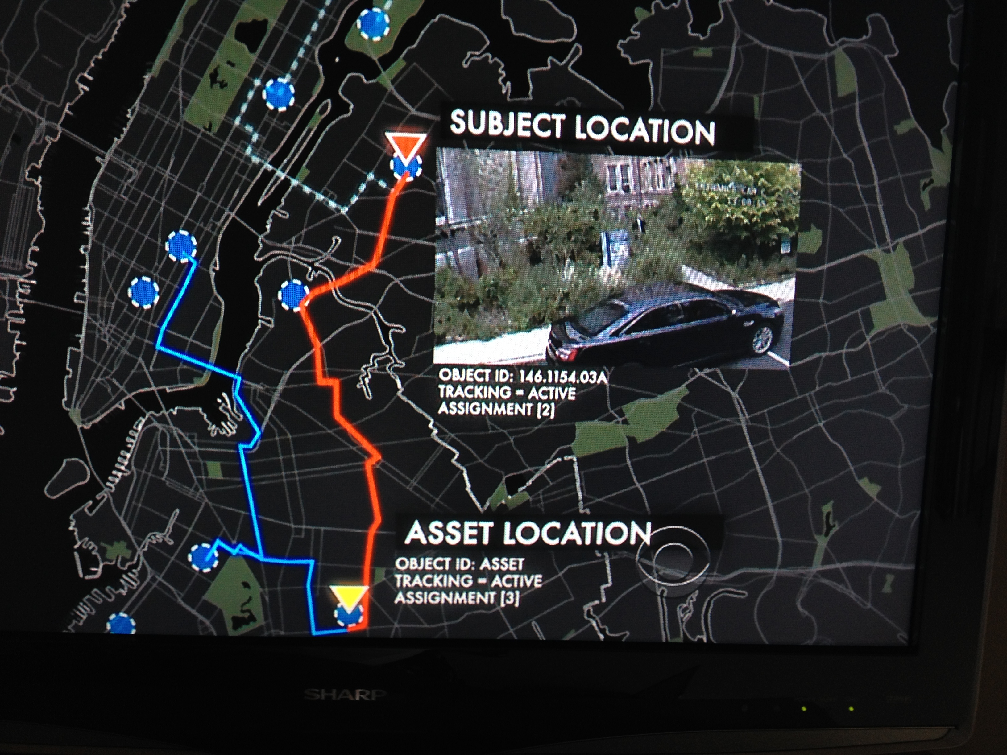 After identifying the subject (Hersh) and the asset (Root) The Machine is able to determine their locations and Mapquest the quickest route between them.
